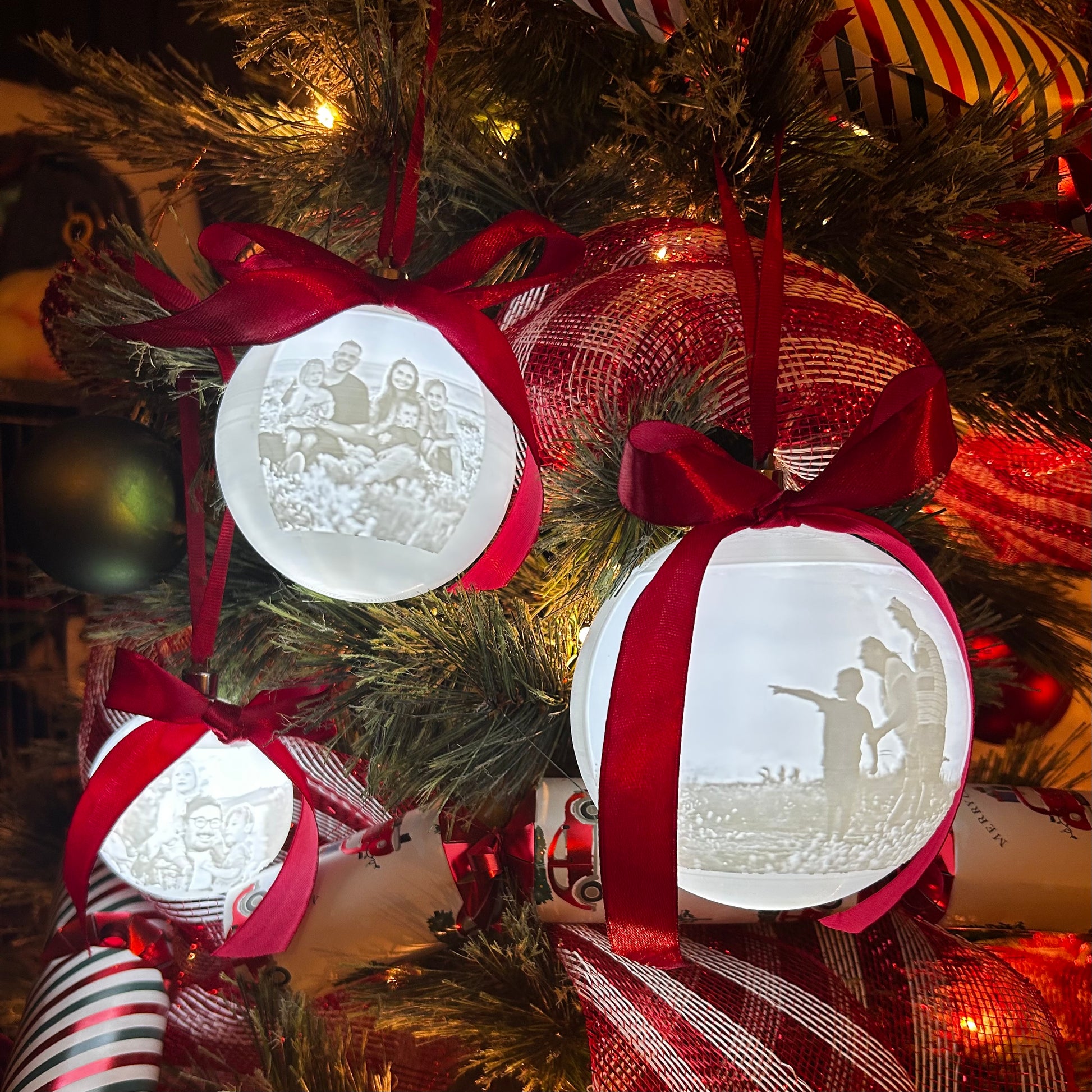 Light up your tree with something truly personal! Our 3D-printed photo baubles beautifully transform your favourite photo into a stunning illuminated keepsake. Each bauble is precision-printed to capture your chosen image in intricate detail, creating a glowing 3D effect when lit.