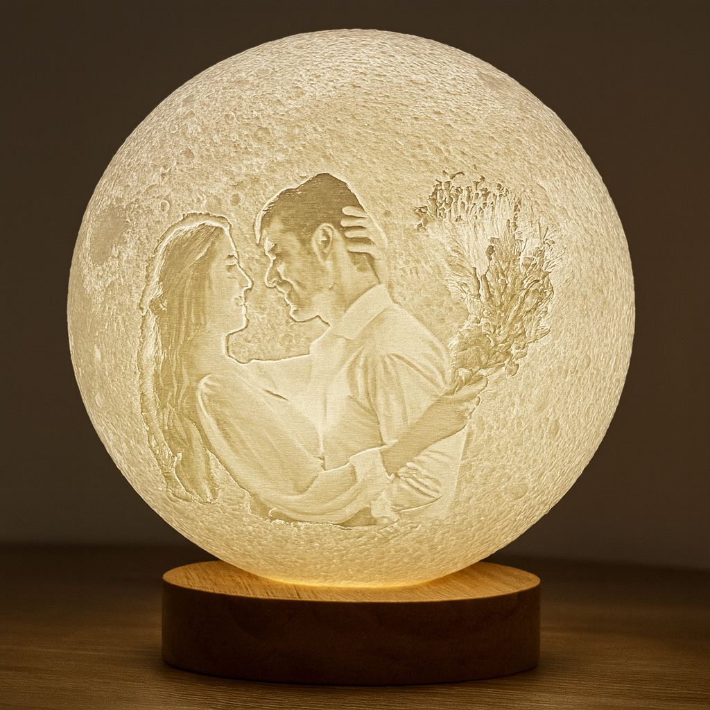Turn your favourite memories into a glowing masterpiece with our custom 3D-printed photo globes. Each globe is carefully crafted using advanced 3D printing technology to etch your chosen image into a realistic moon-style sphere that lights up beautifully from within.